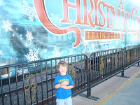 This is what we saw, actual costumes from the original The Christmas Carol, pictures and artifacts. T.V. screens with scenes of the movie, a room where they explained the art of 3D animation and how it is done. Very interesting in my opinion. Then the next room, we made our own images and they were morphed into characters from the movie. Last train, was a fireplace and table of food (fake). Next we walked over to the theater area, where we were given 3D glasses to where. This was the little bit scary part. You know the story of The Christmas Carol, and Ebeneezer Scrooge, he is quite a scary looking guy, and the ghosts were in the short trailer we watched, and the animation and 3D of the movie was amazing. However, scared my 3 yo, and he did not want to watch the movie again! There were lots of children even younger then him in the theater as well. I heard no terrible screams or cries.