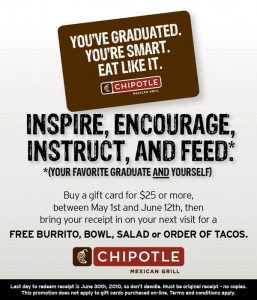 FREEBIE: FREE Burrito, Bowl or Salad or Tacos at Chipotle wyb $25 GC