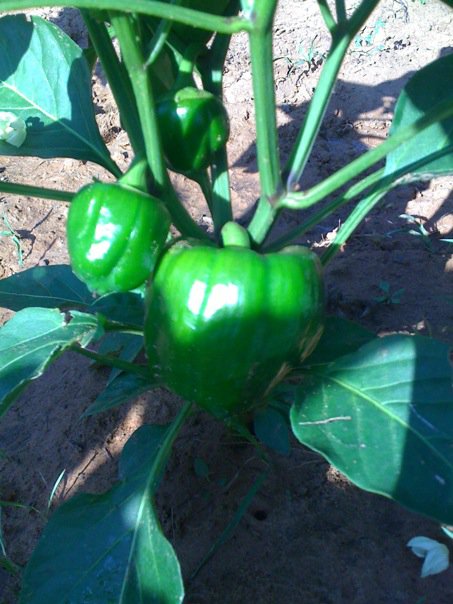 Hi, thought I would share a few pics on my veggie garden. It is doing really well, very excited to have some tomatoes soon, we have tons of green ones right now. We even planted cantalope, hopefully that will turn out okay, I read on the internet all sorts of things to do when you grow cantalope, like put a board under the melon as it grows so it won’t rot. Sounds like alot of work to me, but I am willing to give it a try. Oh, and with the jalapenos I am going to try to make pepper jelly. All my peeps tell me it is easy, just get some sure- jell (not sure how to spell) since I have never bought the stuff.. I am anxious to give it a try. I could be a canning mama by the end of this summer. Below is a picture of my bell peppers,